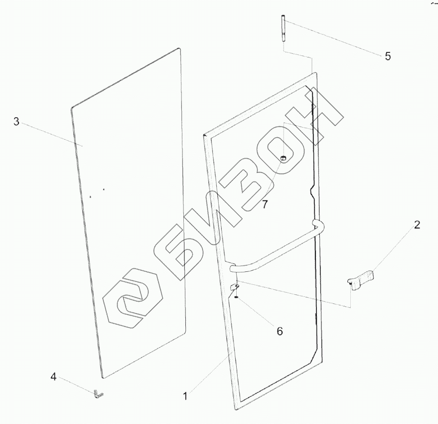 Графический каталог запасных частей к технике: Гомсельмаш КВК-800 (FS80). Дверь КЗК-10-0200120
