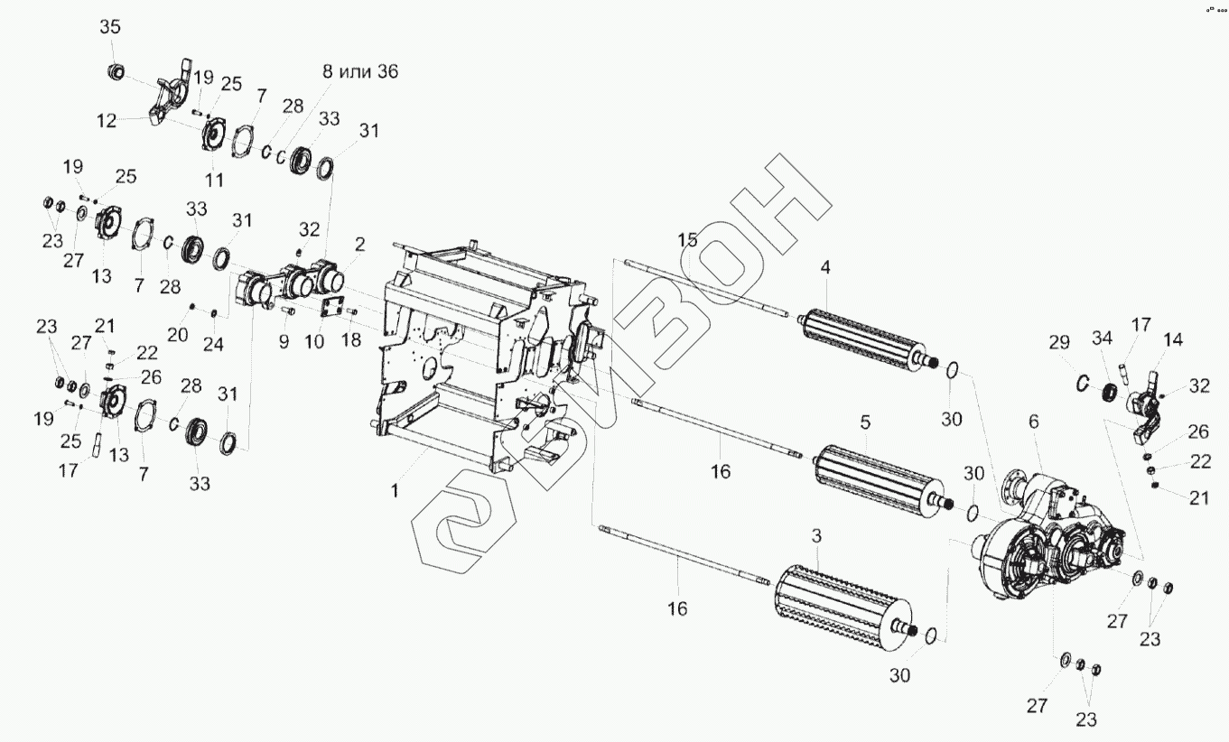 | 6 | КВК 0112100 | Редуктор верхних вальцев |