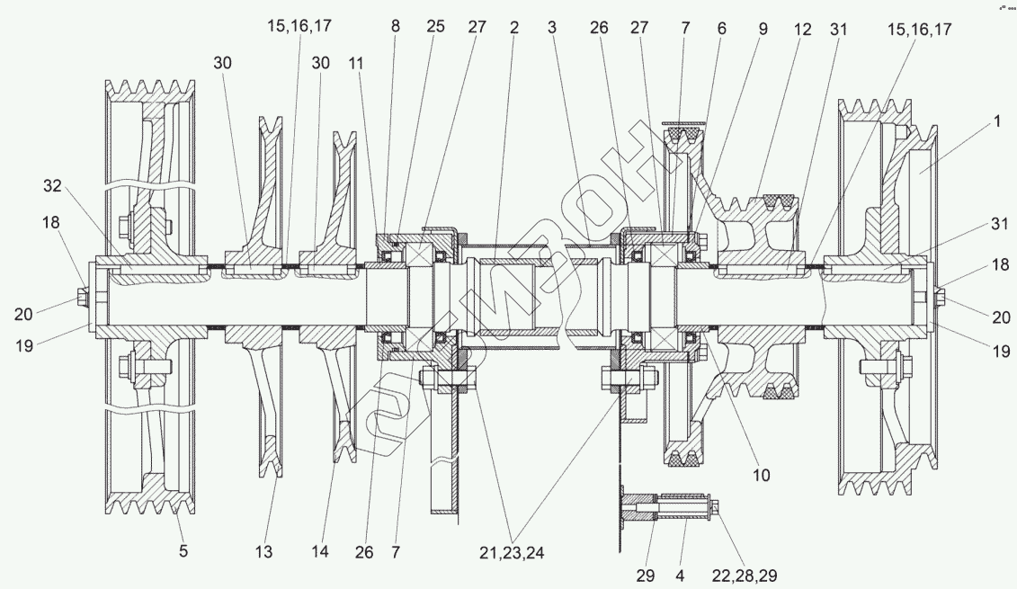 Графический каталог запасных частей к технике: Гомсельмаш КЗС-10К Палессе GS10. Очистка (установка шкивов)