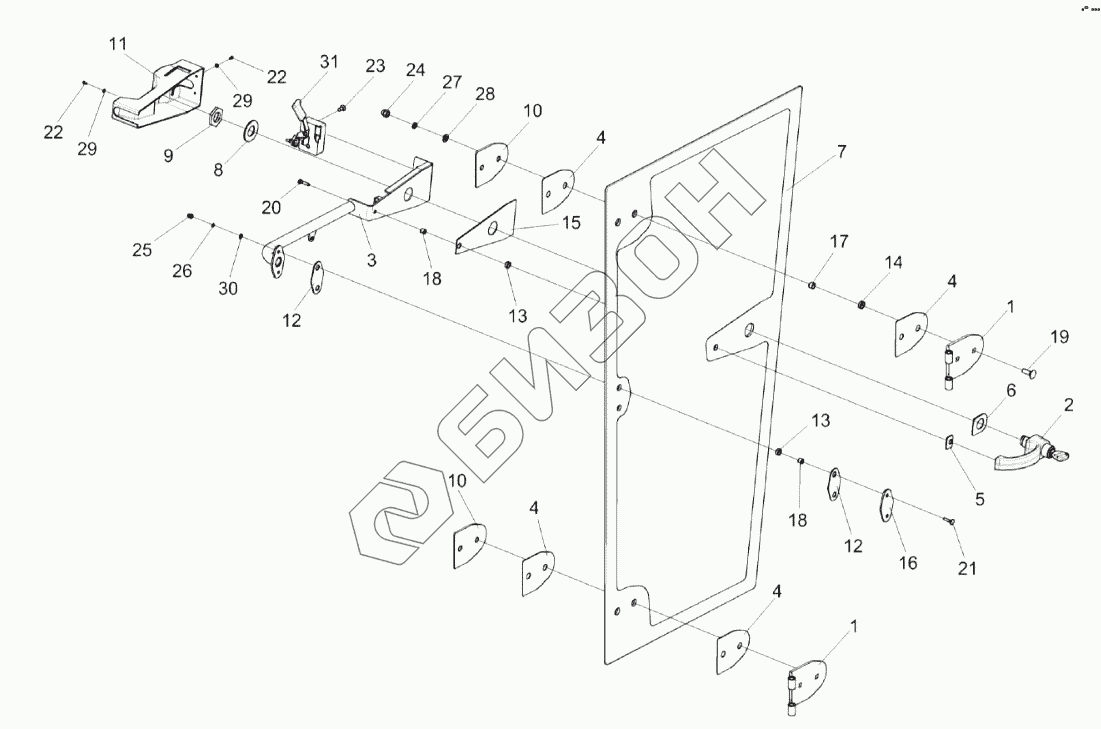 Графический каталог запасных частей к технике: Гомсельмаш КЗС-10К Палессе GS10. Дверь КЗК-12-0131070