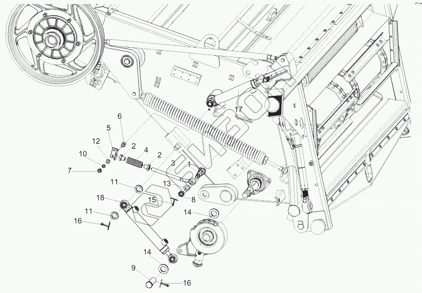 Графический каталог запасных частей к технике: Гомсельмаш КЗС-10К Палессе GS10. Установка гидроцилиндров камеры наклонной