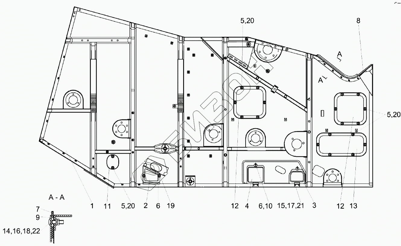 Графический каталог запасных частей к технике: Гомсельмаш КЗС-1218А-1. Боковина правая КЗК-12-0202260