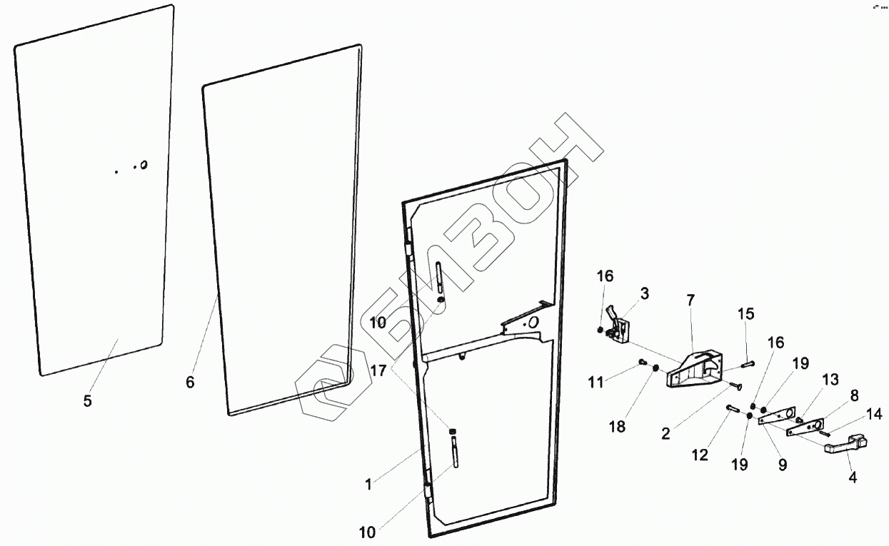 Графический каталог запасных частей к технике: Гомсельмаш КЗС-1218А-1. Дверь КЗК-12-0120330