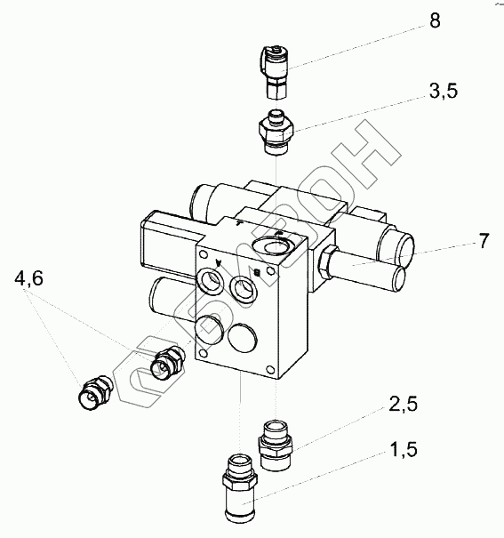 Графический каталог запасных частей к технике: Гомсельмаш КЗС-1218А-1. Гидроблок односекционный КЗК-12-0602670