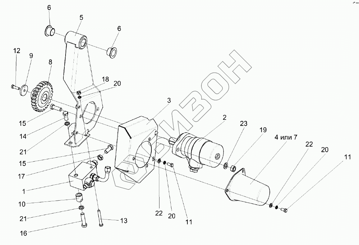 Графический каталог запасных частей к технике: Гомсельмаш КЗС-1218А-1. Гидрореверс КЗК-12-1804100