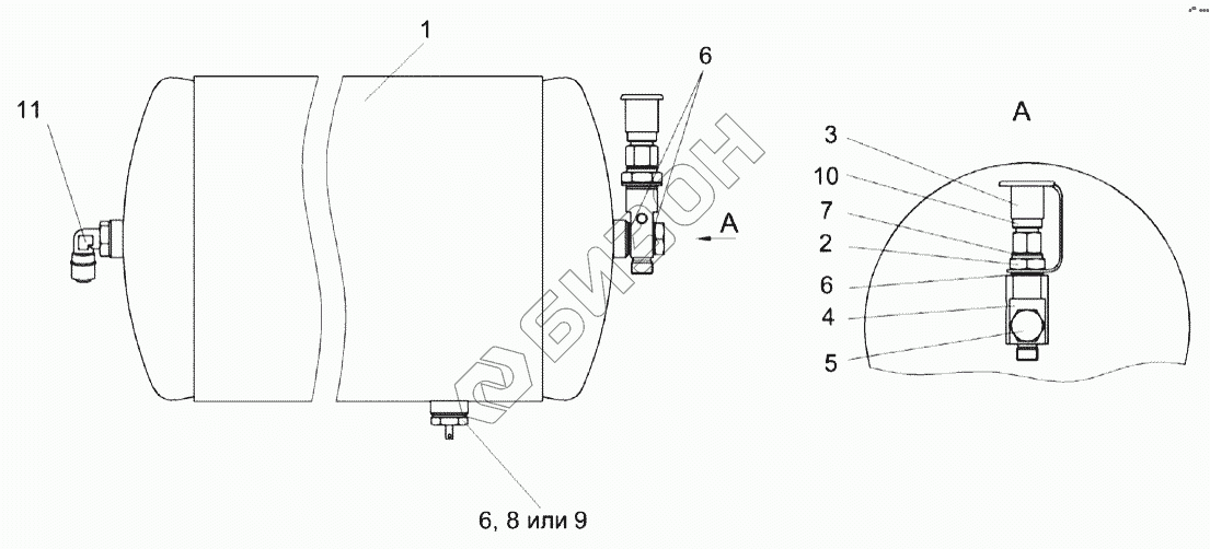 Графический каталог запасных частей к технике: Гомсельмаш КЗС-1218А-1. Ресивер КЗК-2-12-0800050