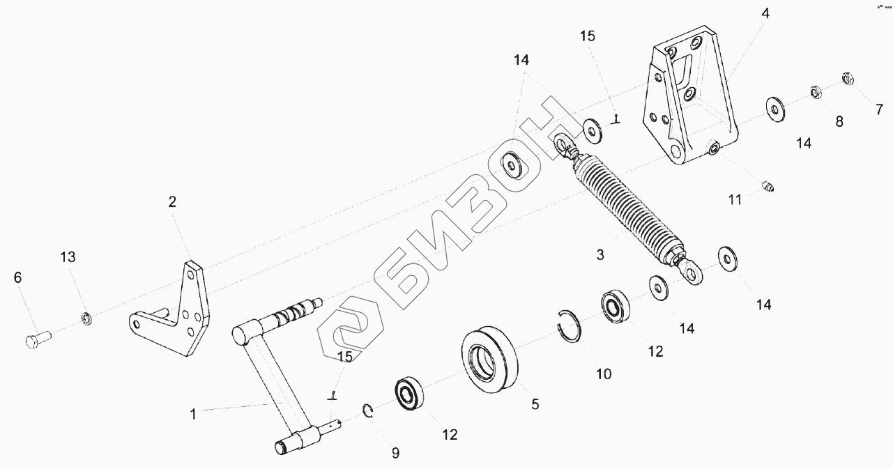 Графический каталог запасных частей к технике: Гомсельмаш КЗС-1218А-1. Устройство натяжное КЗК-10-0112010