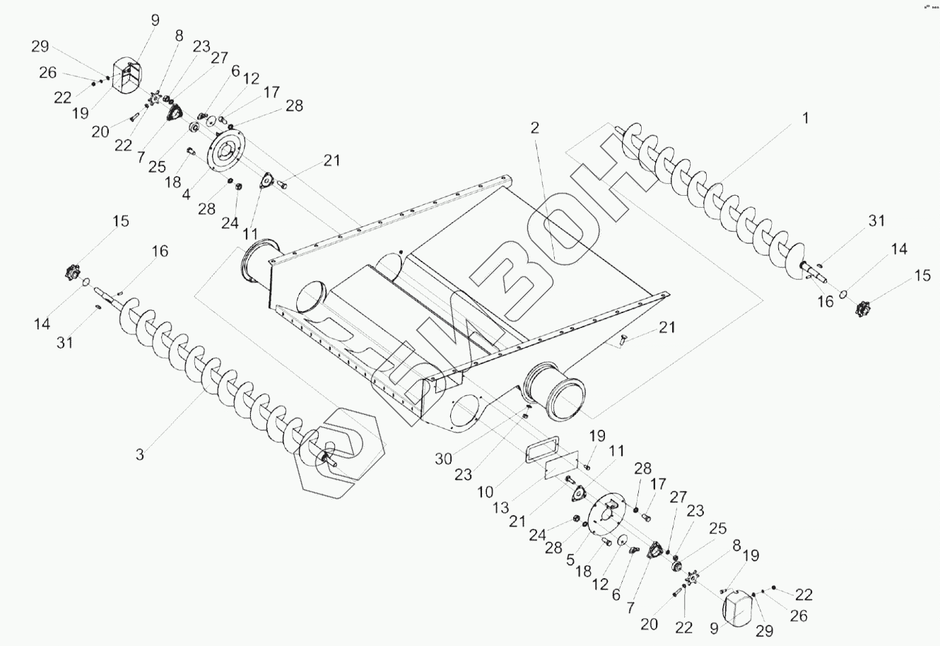 Графический каталог запасных частей к технике: Гомсельмаш КЗС-1218А-1. Блок шнеков КЗК-10-0218010А