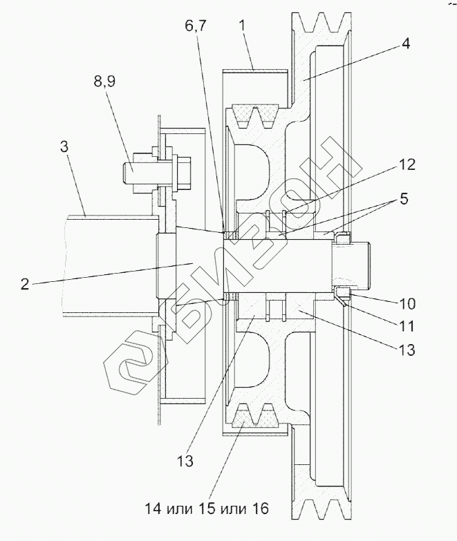 Графический каталог запасных частей к технике: Гомсельмаш КЗС-1218А-1. Установка шкива КЗК-12-0202810