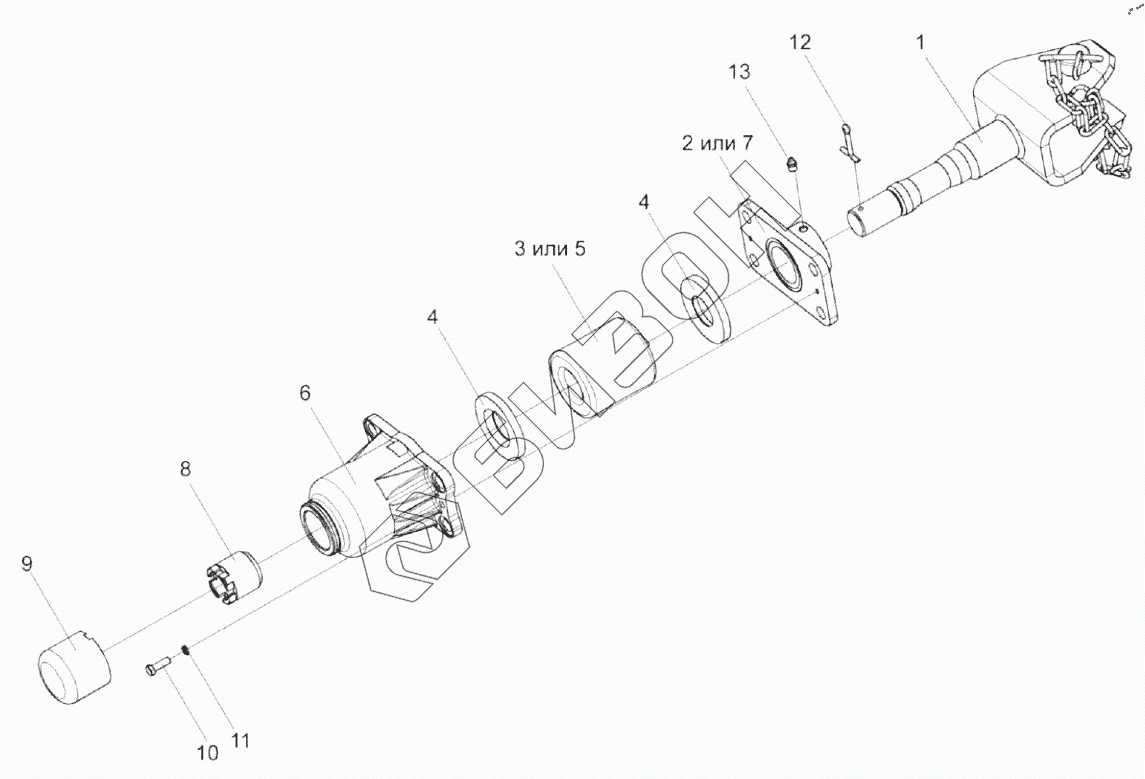 | 1 | КИС 0122010А | Ось устройства прицепного |