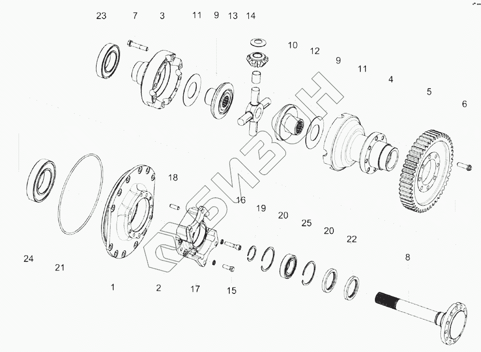 | 9 | КВК0106652 | Шестерня полуоси |