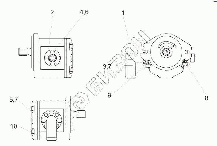 Графический каталог запасных частей к технике: Гомсельмаш КЗС-1624-1. Гидронасос шестеренный КЗК-1420-0602180