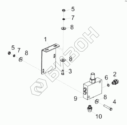 Графический каталог запасных частей к технике: Гомсельмаш КЗС-1624-1. Клапан промывочный КЗК-1420-0608310