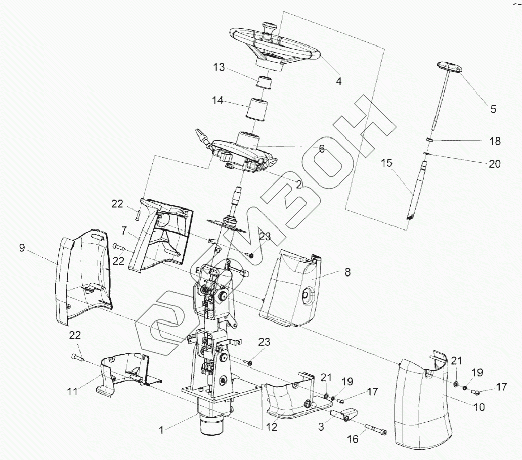 Графический каталог запасных частей к технике: Гомсельмаш КЗС-1624-1. Колонка рулевая КЗК-1420-0119230