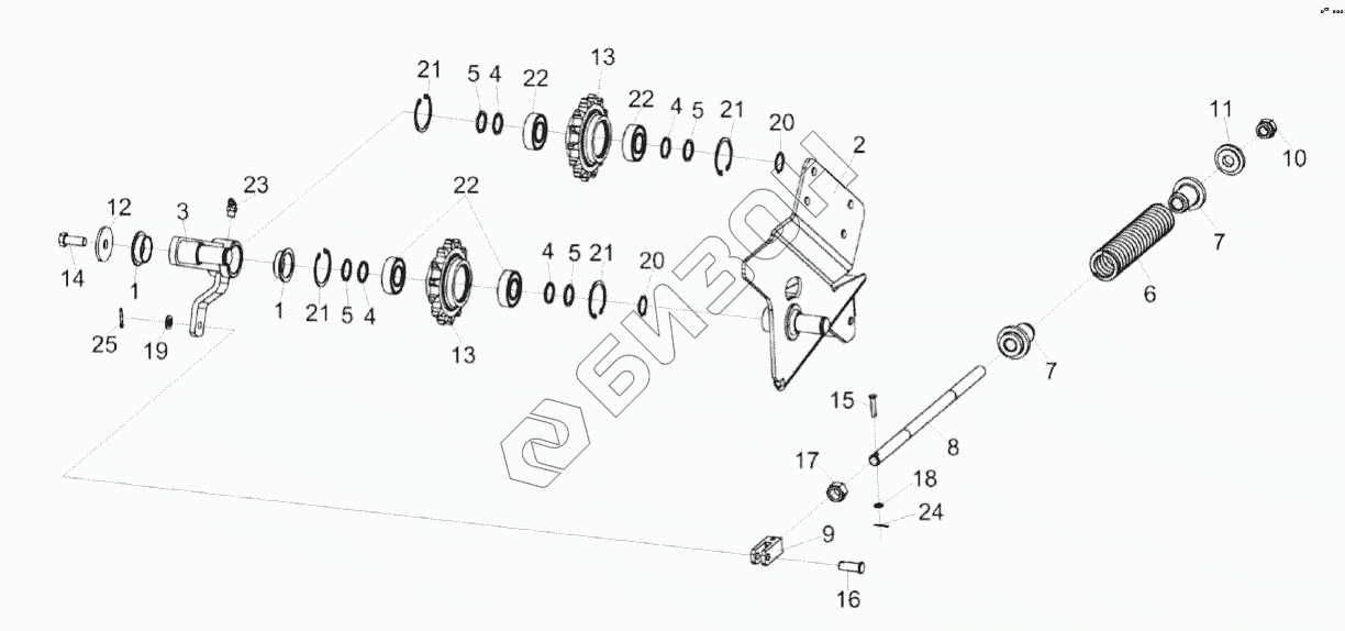 Графический каталог запасных частей к технике: Гомсельмаш КЗС-1624-1. Механизм натяжения КЗК-14-0221230А