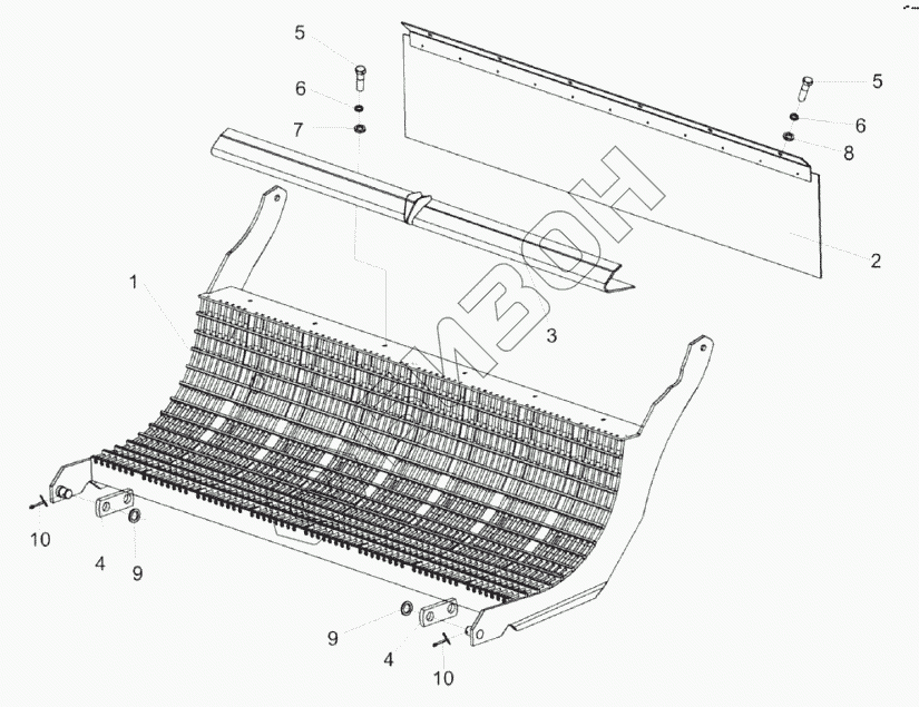 Графический каталог запасных частей к технике: Гомсельмаш КЗС-1624-1. Подбарабанье заднее КЗК-1420-0103200