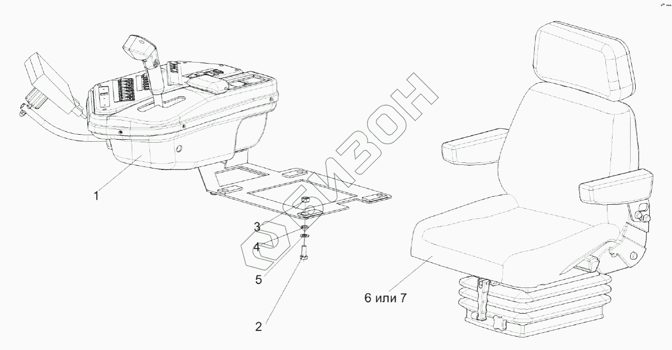 Графический каталог запасных частей к технике: Гомсельмаш КЗС-1624-1. Сиденье КЗК-1420-0119040-01