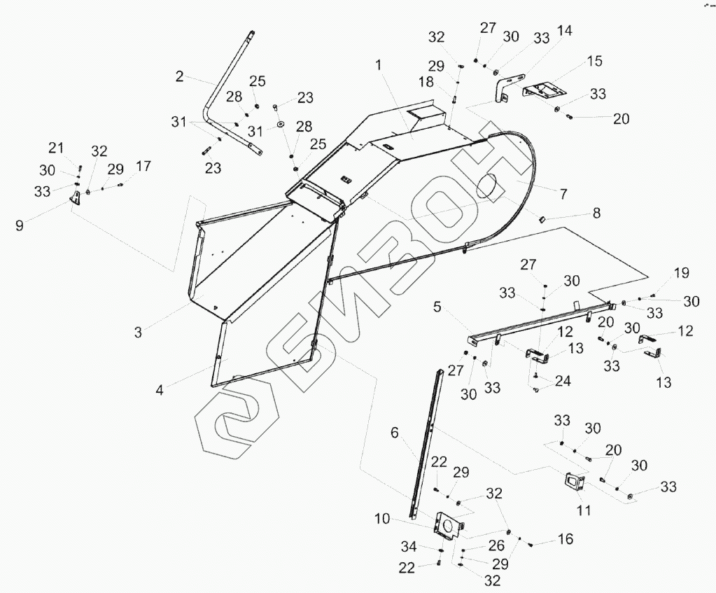 Графический каталог запасных частей к технике: Гомсельмаш КЗС-1624-1. Установка капотов КЗК-1420-0132100