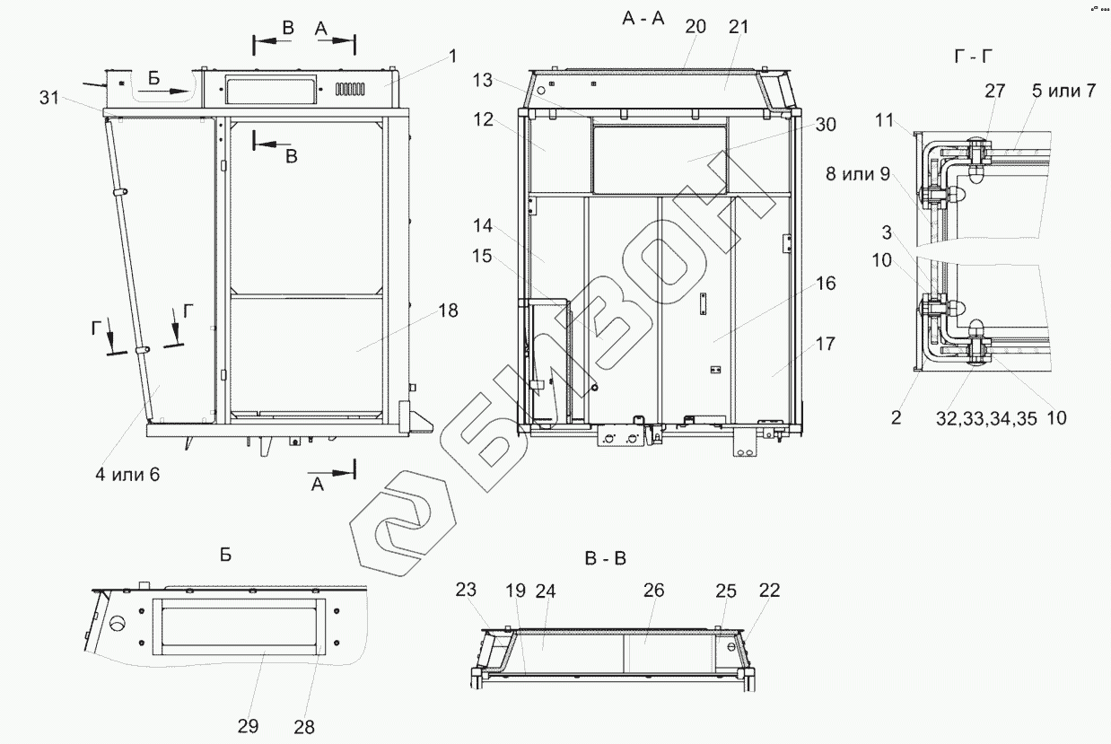 | 1 | КЗК-5-0120030 | Каркас кабины |