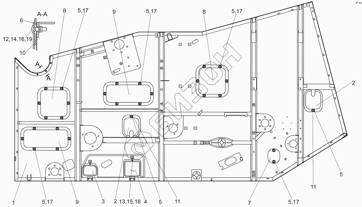 Графический каталог запасных частей к технике: Гомсельмаш КЗС-7. Боковина левая КЗК 0202050В