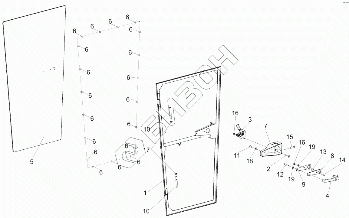 Графический каталог запасных частей к технике: Гомсельмаш КЗС-812. Дверь КЗК-12-0120330
