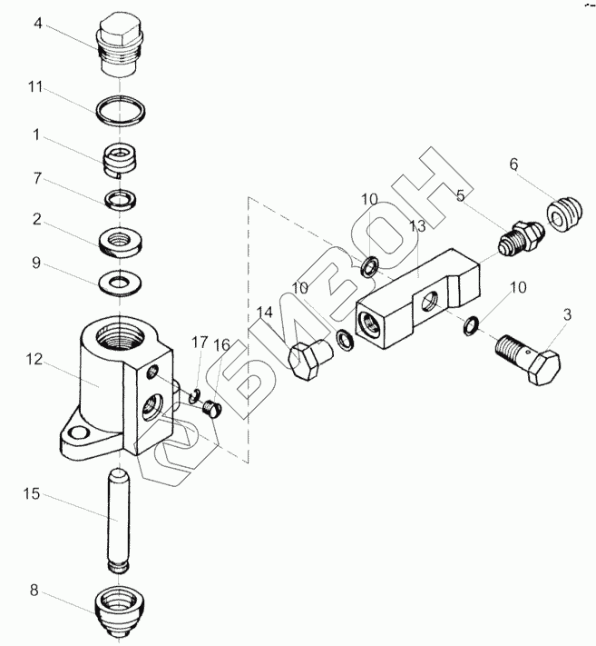 Графический каталог запасных частей к технике: Гомсельмаш КЗС-812. Гидроцилиндр блокировки диапазонов 3518020-46330