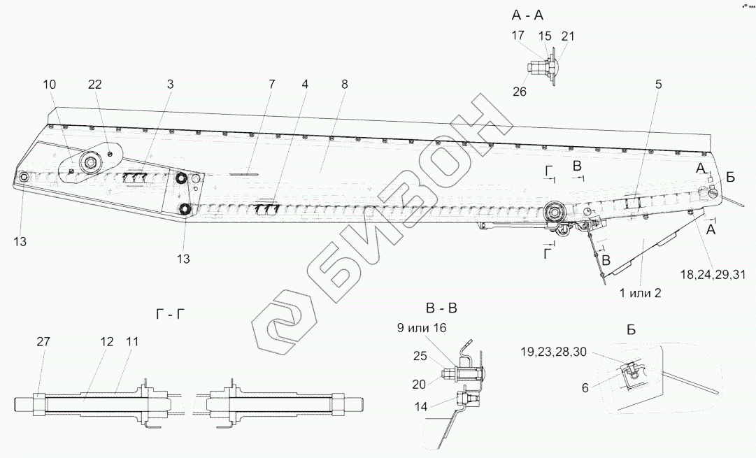 Графический каталог запасных частей к технике: Гомсельмаш КЗС-812. Стан решетный верхний КЗК 0260000Б