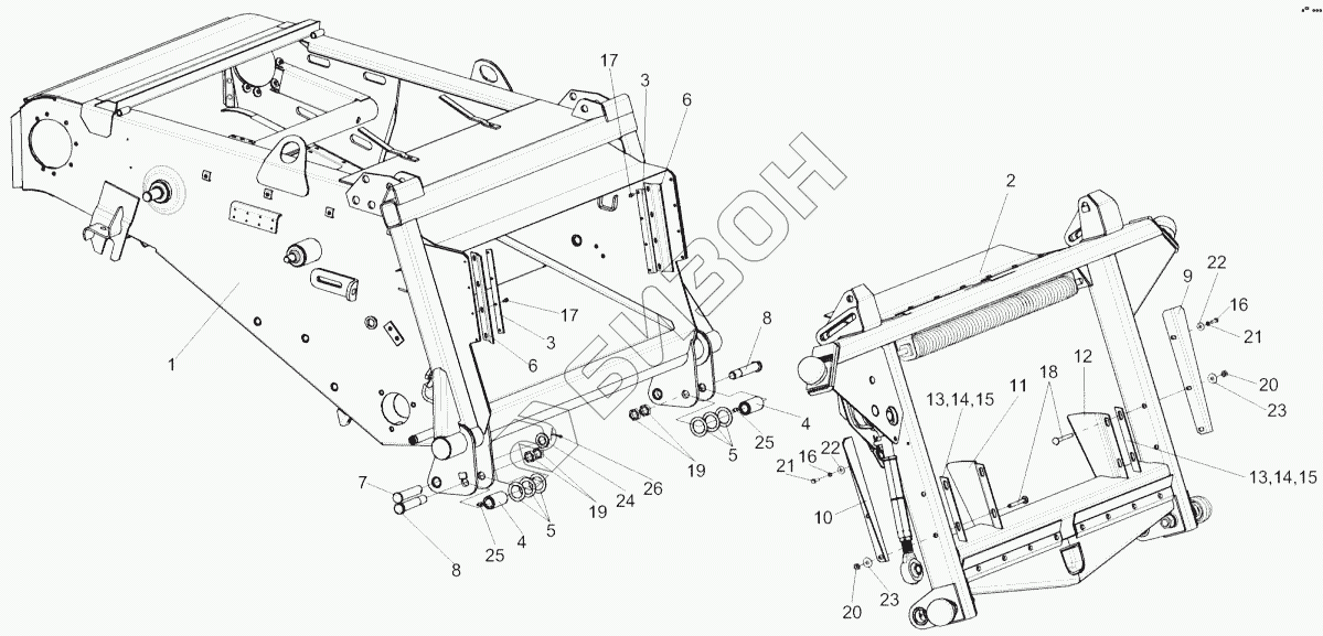 Графический каталог запасных частей к технике: Гомсельмаш КЗС-812. Установка рамки переходной КЗК 1780000А