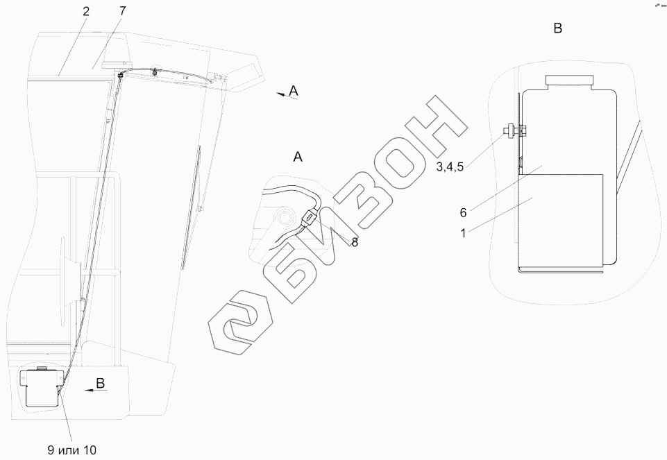 Графический каталог запасных частей к технике: Гомсельмаш КЗС-812. Установка стеклоомывателя КЗК-12-0120460-01