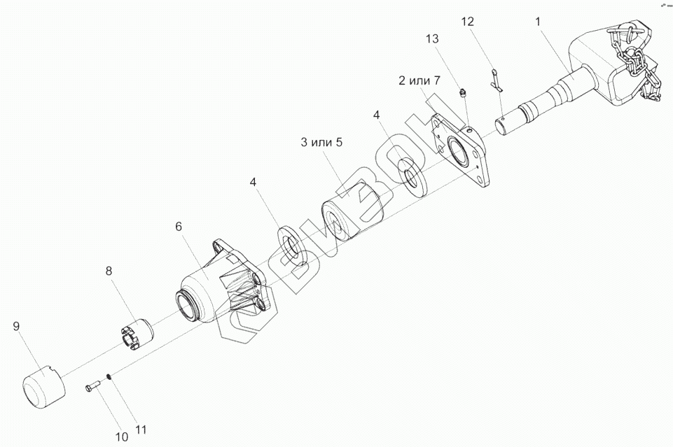 Графический каталог запасных частей к технике: Гомсельмаш КЗС-812. Устройство прицепное КИС 0122000А