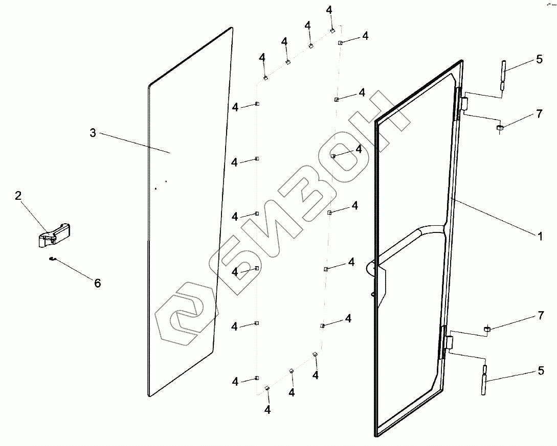 Графический каталог запасных частей к технике: Гомсельмаш KЗС-812. Дверь КЗК-12-0120360