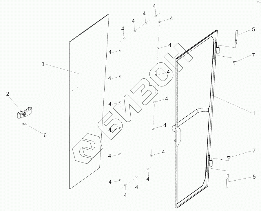 Графический каталог запасных частей к технике: Гомсельмаш KЗС-812. Дверь КЗК-12-0120360