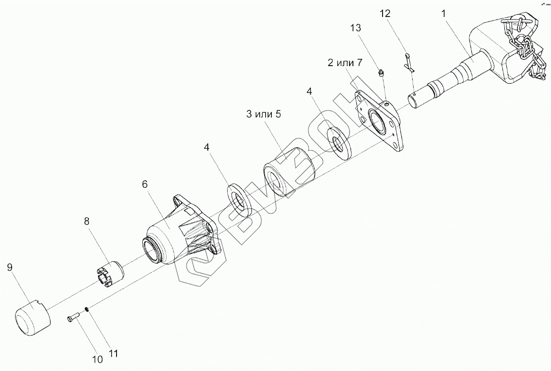 | 1 | КИС0122010А | Ось устройства прицепного |