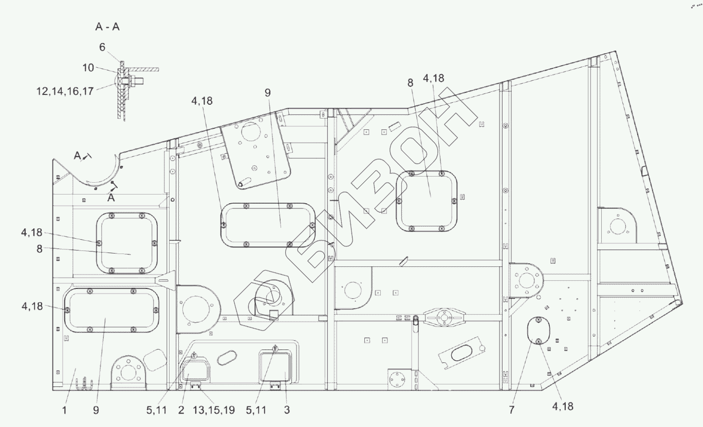 Графический каталог запасных частей к технике: Гомсельмаш KЗС-812. Боковина левая КЗК-8А-0202050