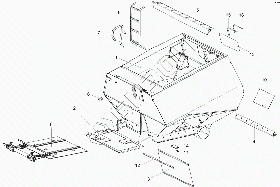 Графический каталог запасных частей к технике: Гомсельмаш КЗС-812С. Бункер КЗК-812-0203000