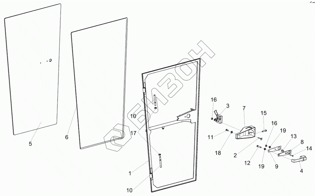 Графический каталог запасных частей к технике: Гомсельмаш КЗС-812С. Дверь КЗК-12-0120330
