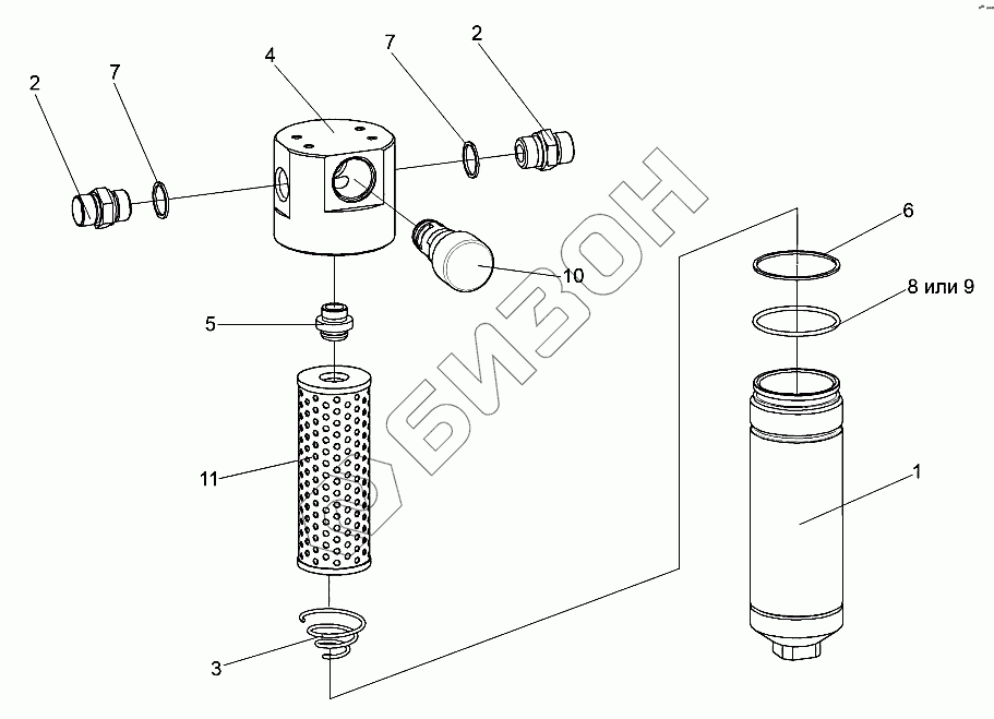 Графический каталог запасных частей к технике: Гомсельмаш УЭС-280. Фильтр напорный КЗК-12-0602570
