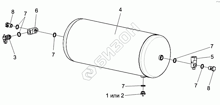 Графический каталог запасных частей к технике: Гомсельмаш УЭС-280. Ресивер УЭС-3-0800040