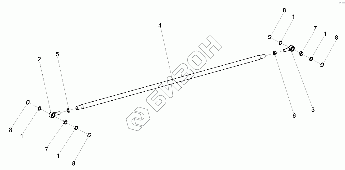 Графический каталог запасных частей к технике: Гомсельмаш УЭС-280. Тяга рулевая УЭС-7-0109060