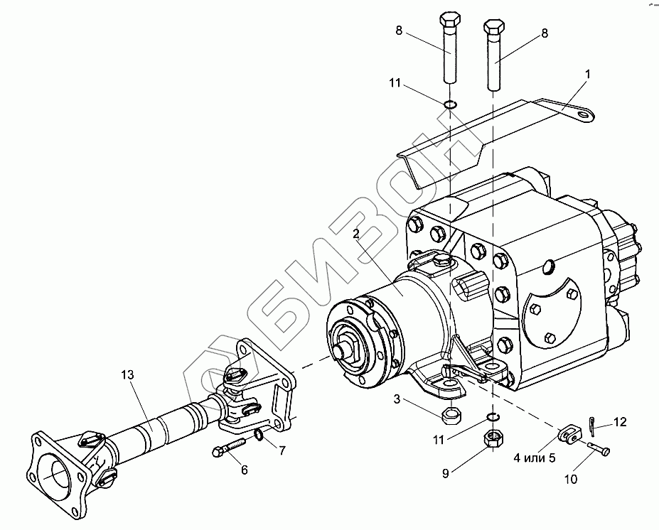 Графический каталог запасных частей к технике: Гомсельмаш УЭС-280. Установка привода гидронасоса УЭС 1200000А-01