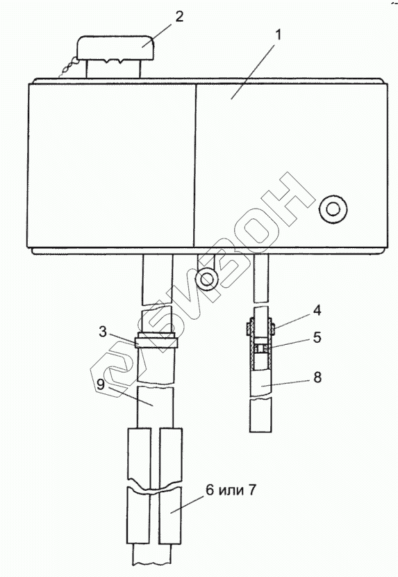 Графический каталог запасных частей к технике: Гомсельмаш УЭС-2-250А. Бачок расширительный УЭС-7-0401500