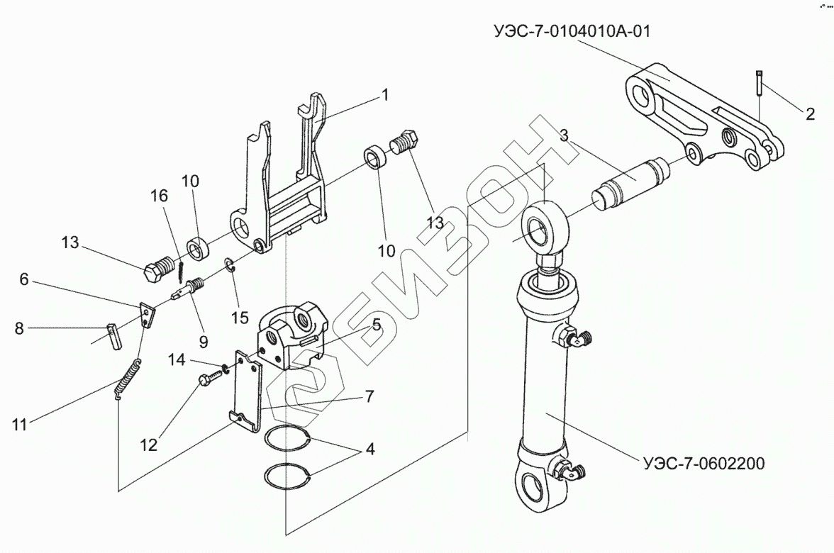 Графический каталог запасных частей к технике: Гомсельмаш УЭС-2-280А. Механизм фиксации УЭС-7-0104140А