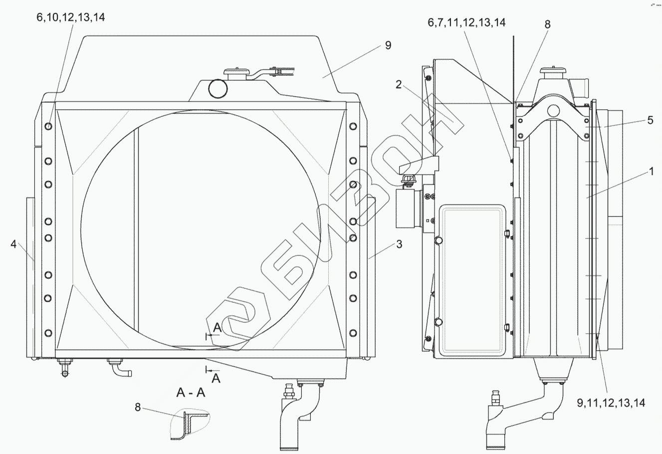 Графический каталог запасных частей к технике: Гомсельмаш УЭС-2-280А. Радиатор УЭС-6-0400150