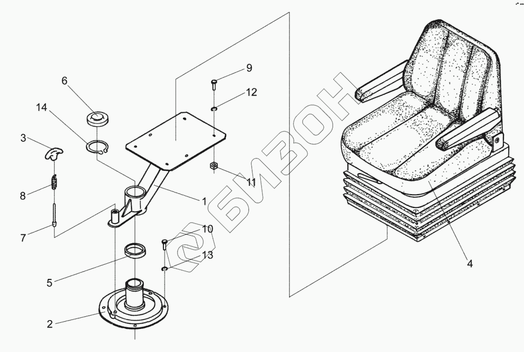 Графический каталог запасных частей к технике: Гомсельмаш УЭС-2-280А. Сиденье