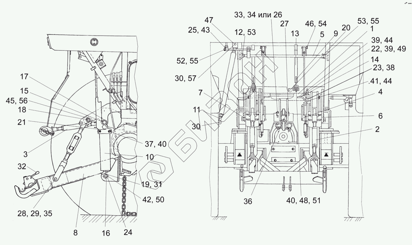 Графический каталог запасных частей к технике: Гомсельмаш УЭС-2-280А. Установка навески (зерноуборка)