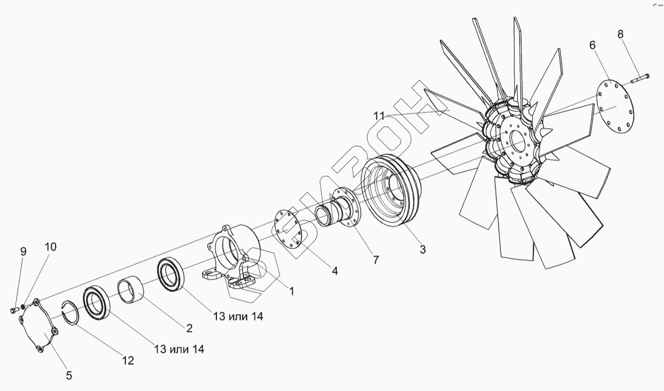 Графический каталог запасных частей к технике: Гомсельмаш УЭС-2-280А. Вентилятор УЭС-8-0400170
