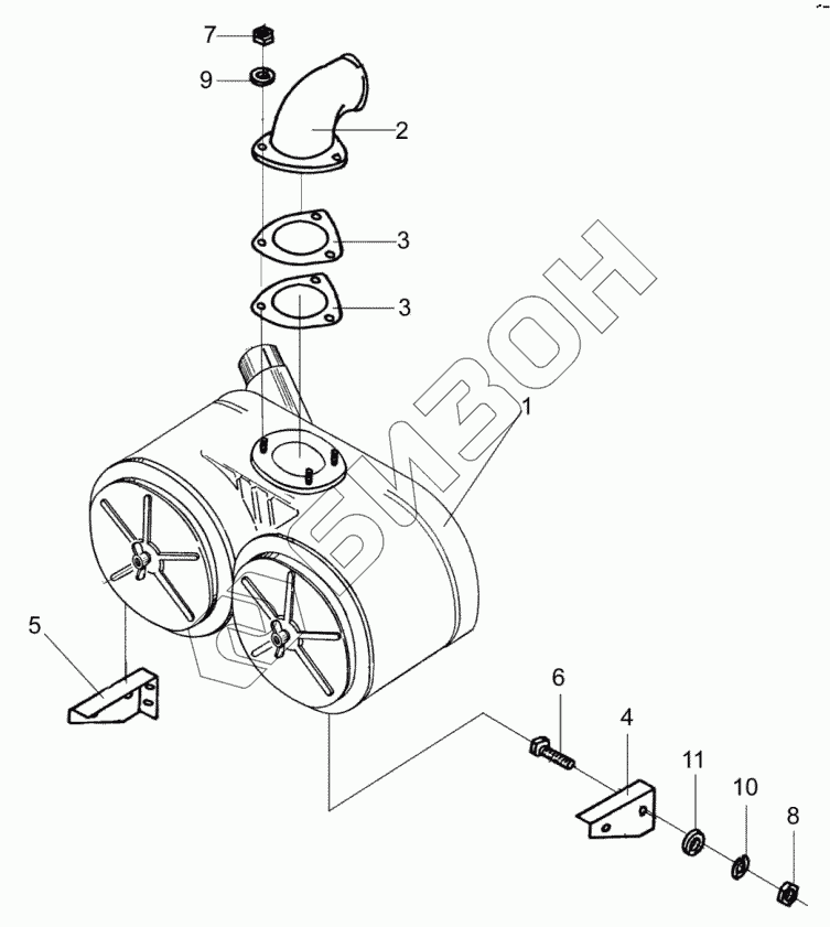 Графический каталог запасных частей к технике: Гомсельмаш УЭС-2-280А. Воздухоочиститель УЭС-6-0400600