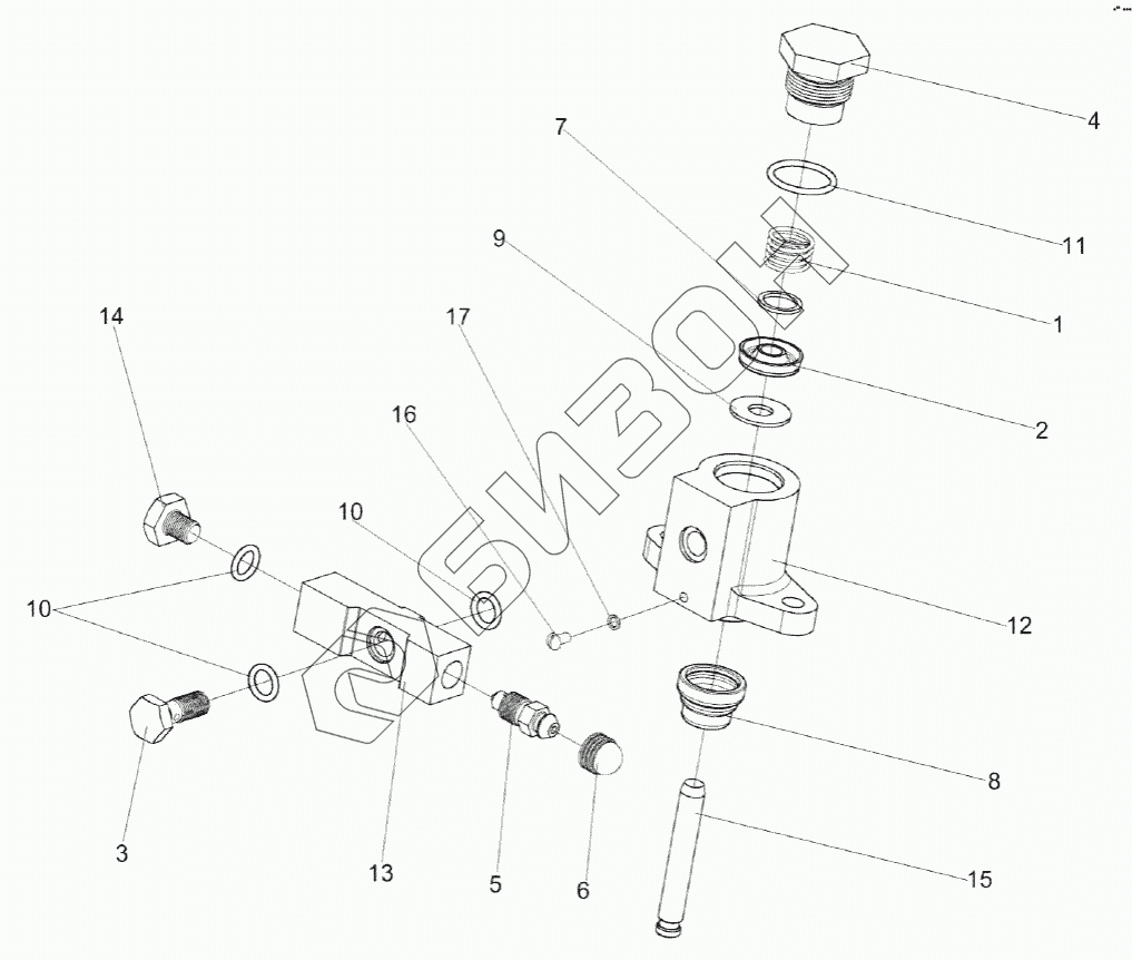Графический каталог запасных частей к технике: Гомсельмаш УЭС-2-280А. Гидроцилиндр блокировки диапазонов 3518020-46330