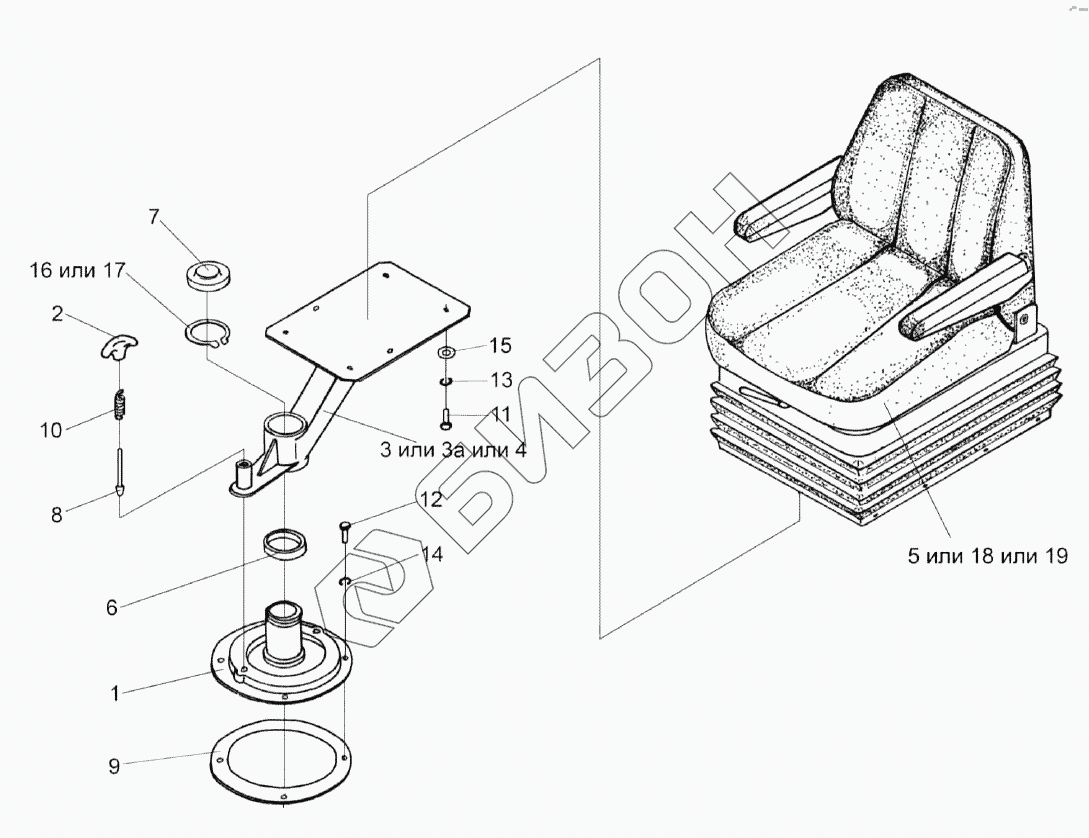 Графический каталог запасных частей к технике: Гомсельмаш УЭС-2-280А. Установка сиденья