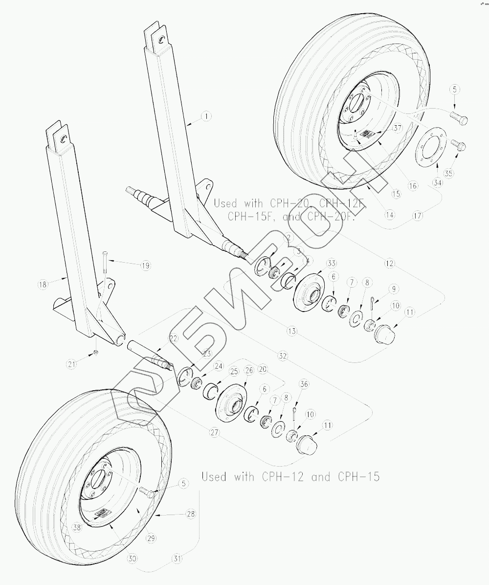 | 17 | 155-007К | TRANSPORT WHEEL/TIRE ASY BKSN |